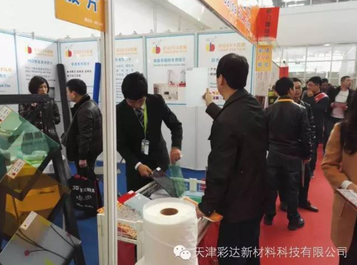 天津彩達(dá)新材料科技有限公司攜帶最新月光白膠片和多種新款彩色膠片,參加第二十三屆國(guó)際建筑裝飾及材料博覽會(huì),贏得了眾多參觀者的青睞,還有一些老客戶的參觀,對(duì)彩達(dá)膠片的使用,獲得了他們一致的好評(píng)!望彩達(dá)與新老客戶共同進(jìn)步,攜手共贏!