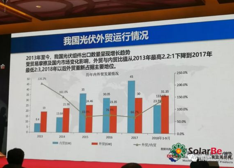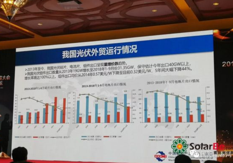 中國(guó)機(jī)電產(chǎn)品進(jìn)出口商會(huì)副會(huì)長(zhǎng)、太陽(yáng)能光伏產(chǎn)品分會(huì)執(zhí)行理事長(zhǎng)王貴清在演講中表示,中美之間的貿(mào)易戰(zhàn)從去年8月啟動(dòng)開(kāi)始,美國(guó)對(duì)中國(guó)做了系統(tǒng)性的研究,對(duì)我國(guó)制定了對(duì)華貿(mào)易政策,出臺(tái)了301調(diào)查報(bào)告,對(duì)中國(guó)經(jīng)濟(jì)進(jìn)行了全面指責(zé)。